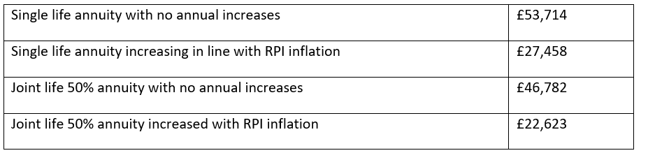 The below table highlights how the decisions you make with a £1 million pension can affect your income.